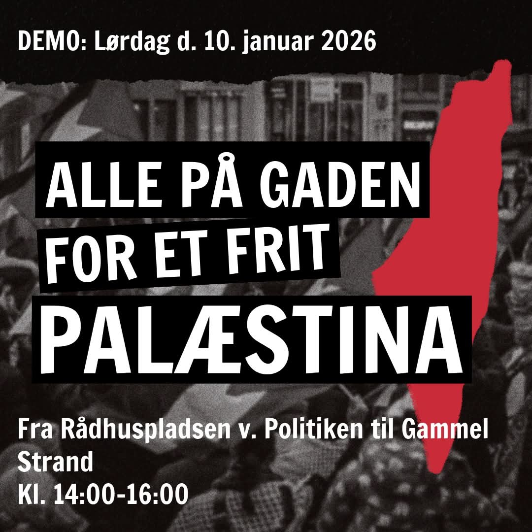 For inquiries and other info, write to the organising group, Alle på Gaden for Palæstina (APG) at info@allepaagaden.dk