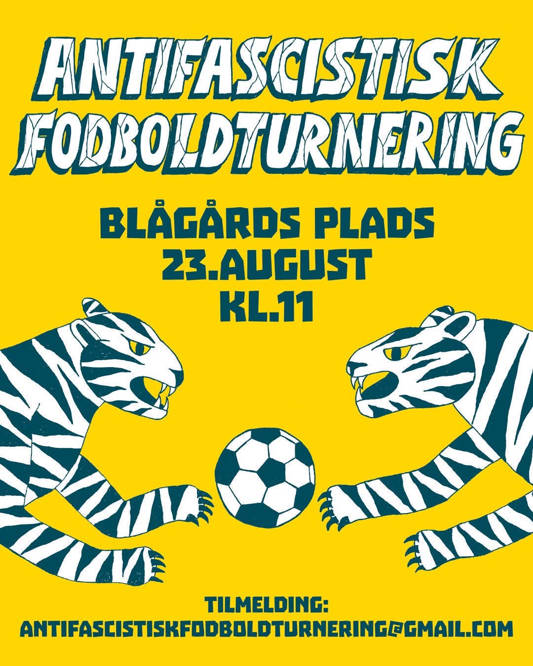 Tilmeldingen til turneringen sker ved at sende en mail med sit holdnavn til Antifascistiskfodboldturnering@gmail.com