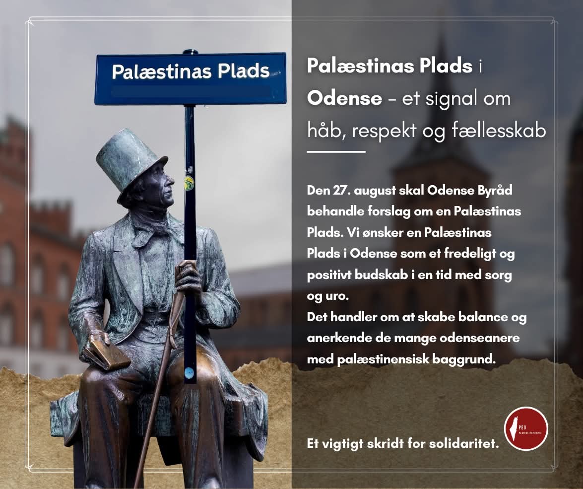 I Odense har vi allerede en Israels Plads. Vi ønsker derfor en Palæstinas Plads i Odense som et fredeligt og positivt budskab i en tid med sorg og uro. Det handler om at skabe balance og anerkende Palæstina og alle de herboende, odenseanske palæstinesere. Vi skal vise, at Odense er en by, hvor der plads til alle og plads til håb. ✌️