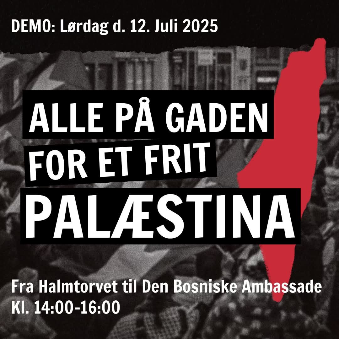 Den 11. juli 1995 begik serbiske styrker et folkedrab i den bosniske by Srebrenica. Over 8.000 muslimske drenge og mænd blev systematisk myrdet, mens verdenssamfundet så til. I dag – 30 år senere – står vi igen over for et folkedrab, denne gang i Gaza. Tusinder af civile er blevet dræbt, børn sulter, og hele familier udslettes, mens verdens ledere endnu engang undlader at gribe ind. Med denne demonstration mindes vi ofrene for Srebrenica og råber i solidaritet med det palæstinensiske folk: Aldrig mere betyder aldrig mere – for alle. Vi går på gaden for at kræve handling, retfærdighed og frihed. Vi nægter at vende blikket væk.