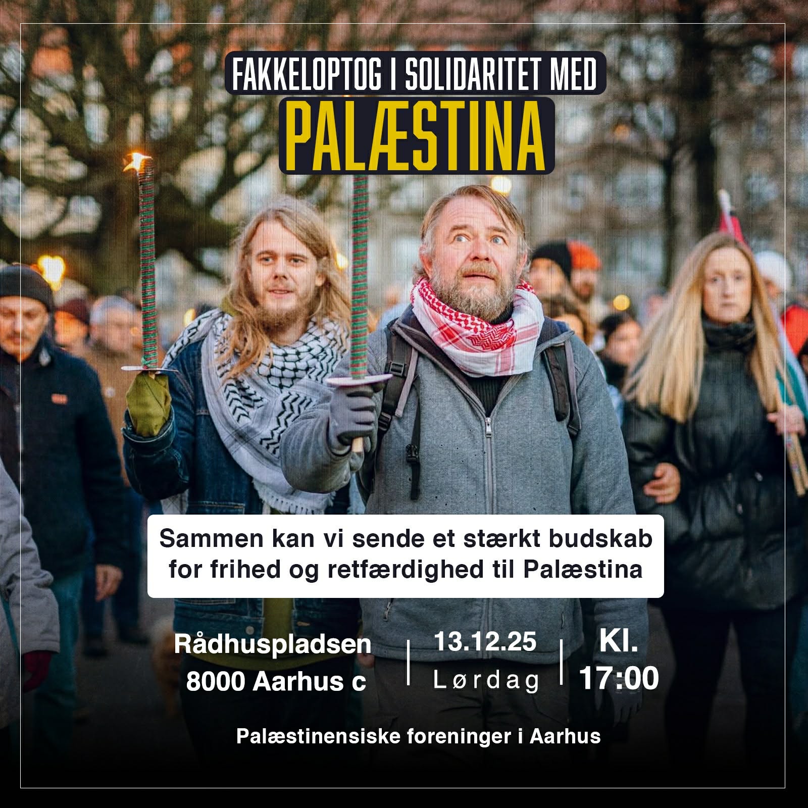 Vi inviterer jer til et fakkeloptog i solidaritet med Palæstina lørdag den 13. december kl. 17.00.