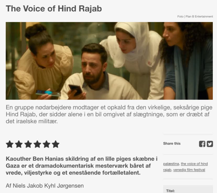 Hind Rajabs stemme er en del af FILMPORTEN. Vi ses i Øst for Paradis ❤