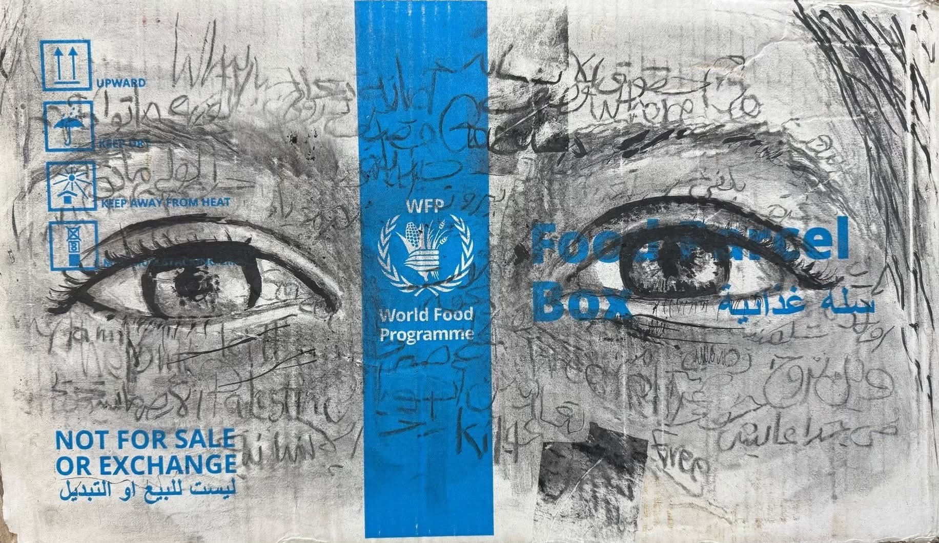 Da krigen efterlod ham uden forsyninger, begyndte han at bruge kasserede WFP-madkasser som lærred.