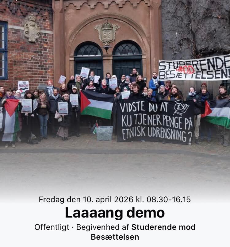 Den 10. april mødes bestyrelsen for KU, Danmarks førende universitet, der til stadighed støtter Israels folkemord ved at samarbejde med israelske entiteter, der tjener på besættelsen af Palæstina og udryddelsen af palæstinensere.