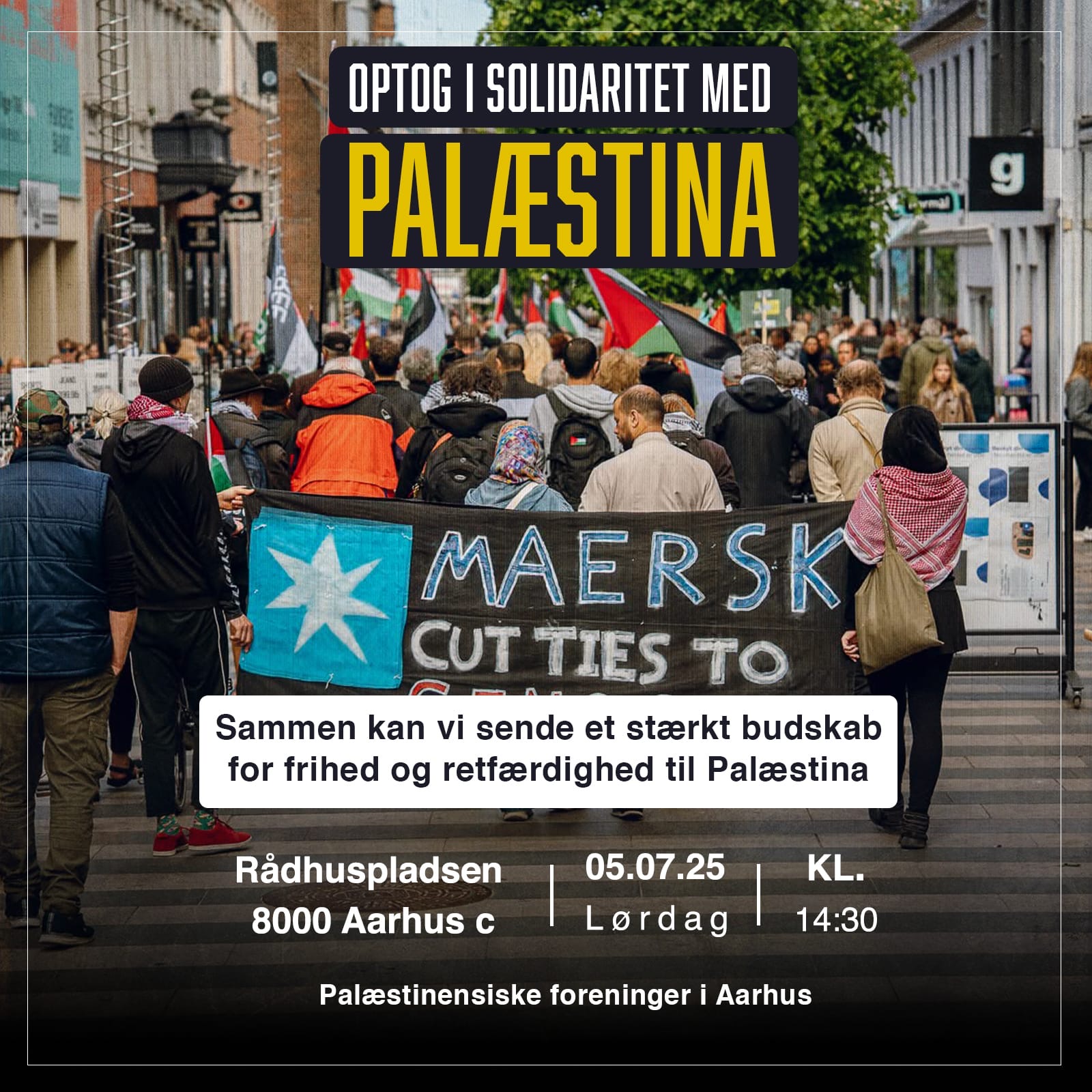 Vi ønsker IKKE flag/bannere/skilte/aviser, der reklamerer for organisationer/partier/foreninger, da dette her alene handler om en SAMLET protest mod det der foregår i Palæstina.