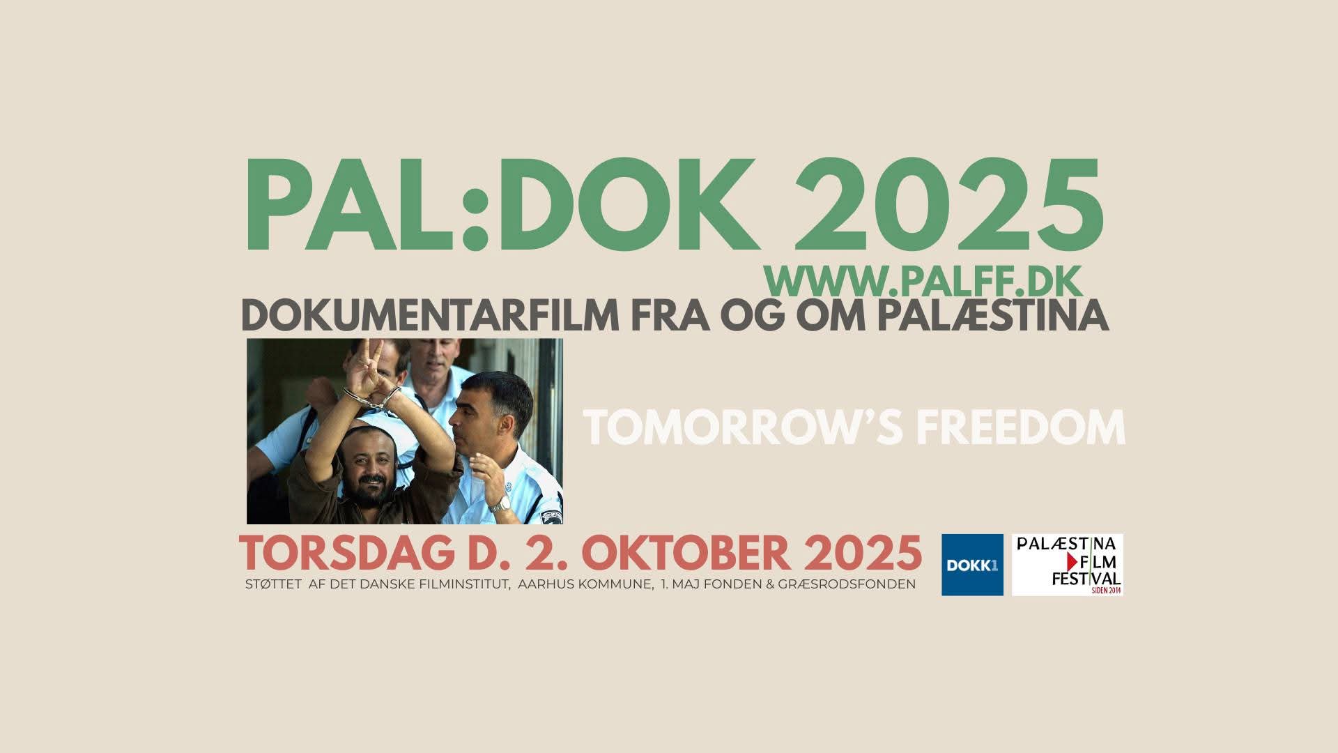 Torsdag d. 2/10 kl. 17.00 viser vi Tomorrow’s Freedom i samarbejde med DOKK1 på Hack Kampmanns Plads 2, 8000 Aarhus C. Filmen fortæller historien om Marwan Barghouthi, kaldt Palæstinas Nelson Mandela, og skildrer hans rolle i Oslo-aftalen, 2. Intifada og efterfølgende fængsling med fem livstidsdomme. Historien ses gennem Barghouthis familie, med fokus på de udfordringer, hans kone og børn møder, herunder fængselsbesøg og hans 43-dages sultestrejke.