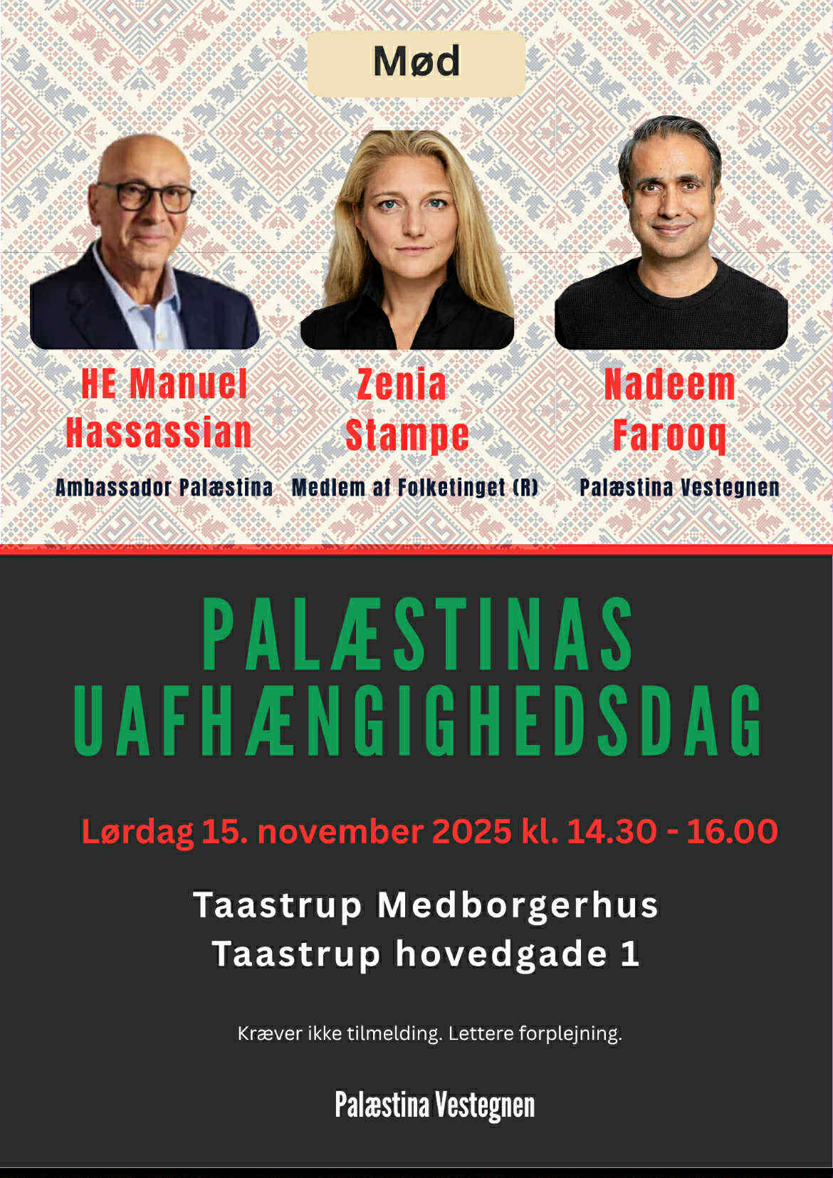 Kræver ikke tilmelding. Lettere forplejning.