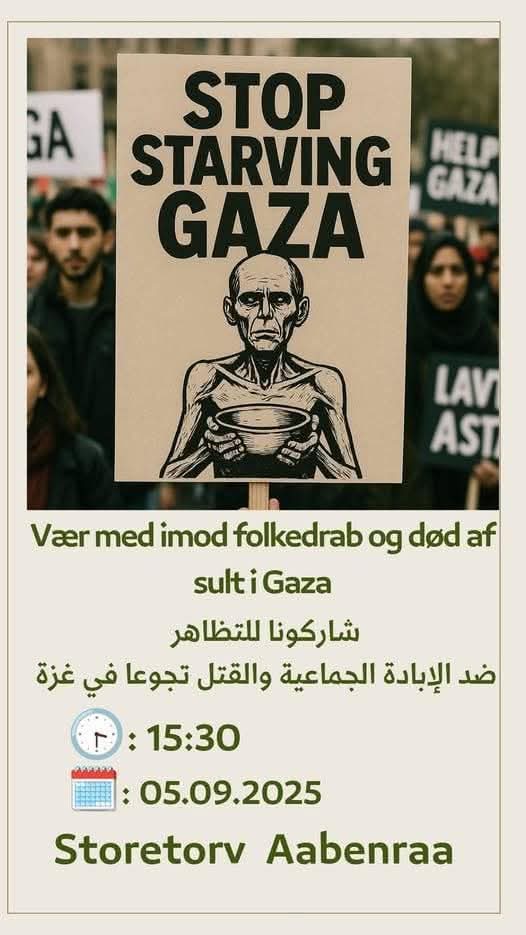 Stop Starving Gaza! Kom til Storetorv Aabenraa den 5/9 kl 15.30 💚❤️💚❤️