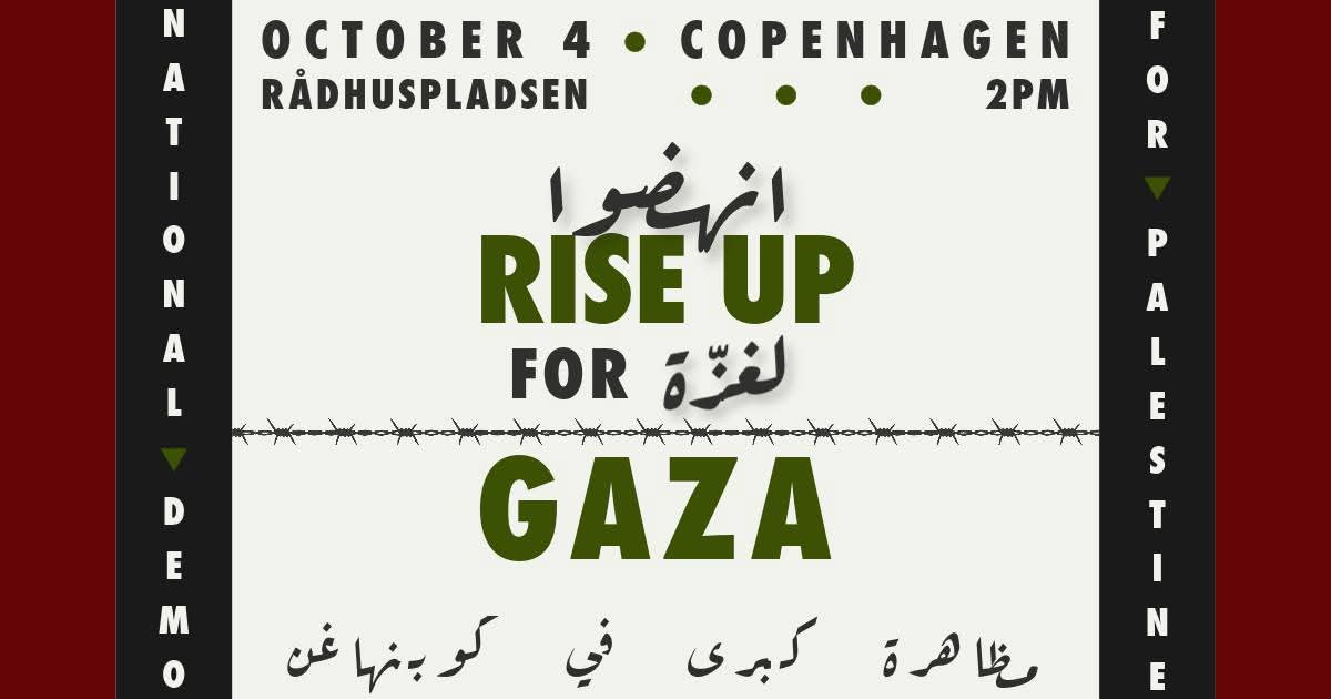 Vi opfordrer hele Danmark til at deltage i stordemonstrationen fra Rådhuspladsen i København for at markere 2 år med folkedrab i Gaza, der indtil videre har kostet mere end 50.000 palæstinensere livet. Det har aldrig været vigtigere, at den danske befolkning står sammen og siger fra over for det zionistiske folkemord i Gaza og overfor den danske regerings fortsatte støtte til den israelske besættelsesmagt.
